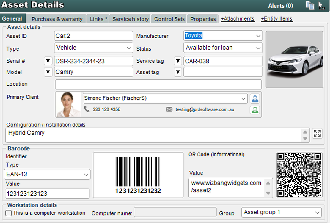 The asset register allows you to capture and store information about assets, purchase and warranty, service history, helpdesk history, maintenance history, custom information and forms, as well as:
