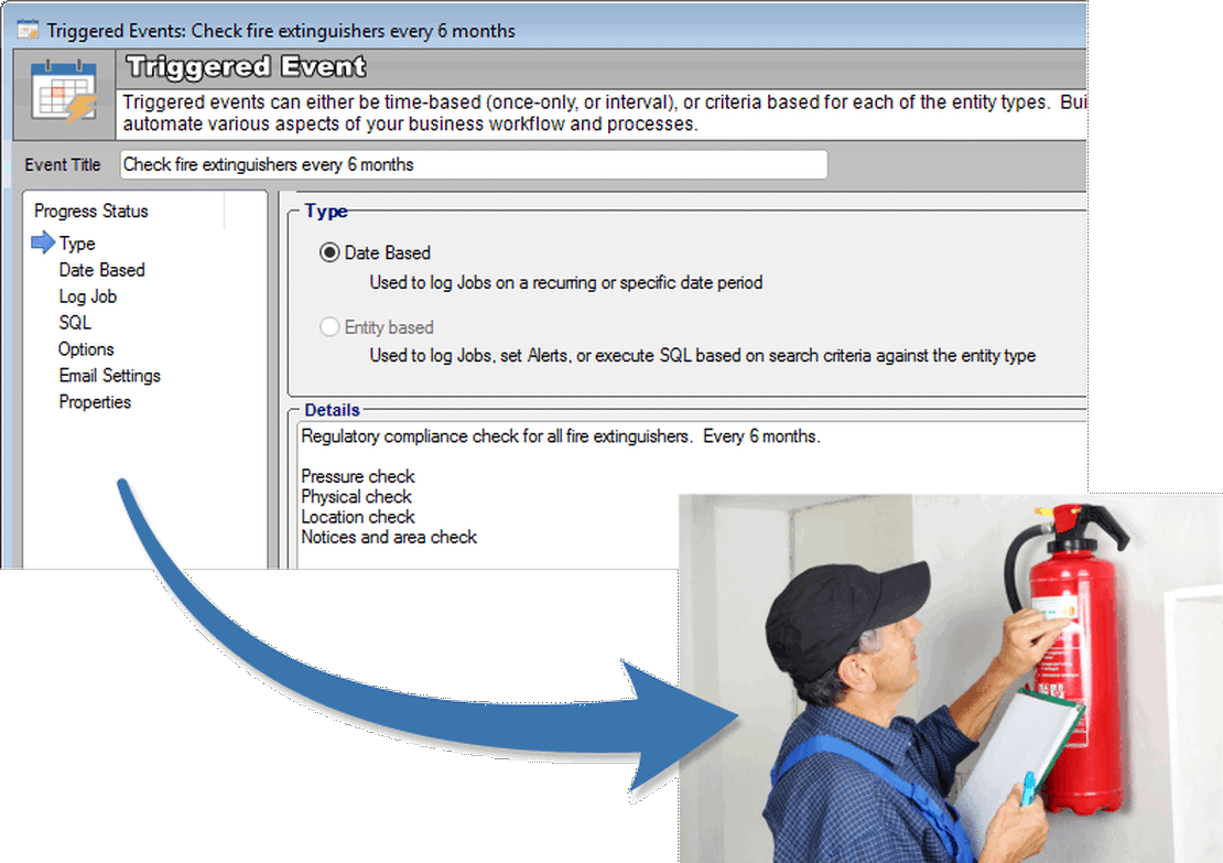 Build recurring date-based triggers that that will create new mainteance jobs for technicians, maintenance officers and other personnel that are assigned to asset maintenance.